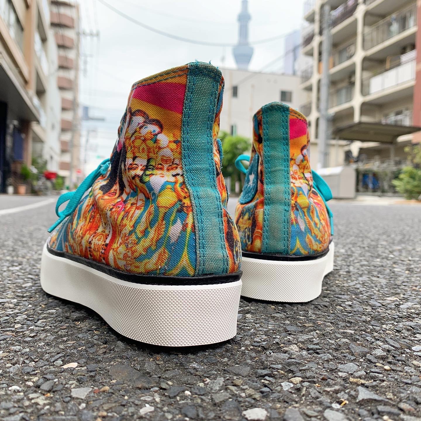 ソール底面にスポンジ板を積み上げて厚底仕様にいたします。