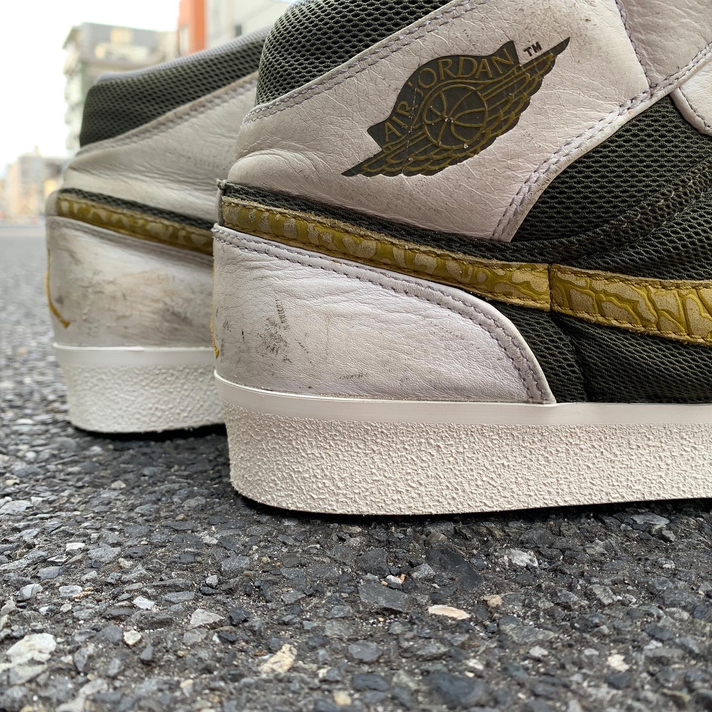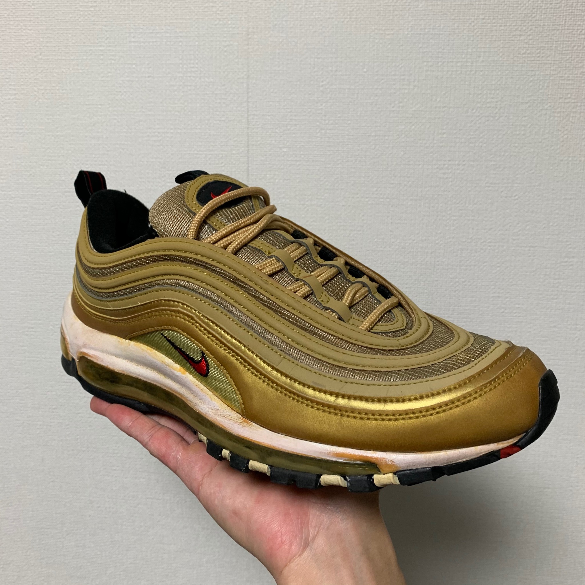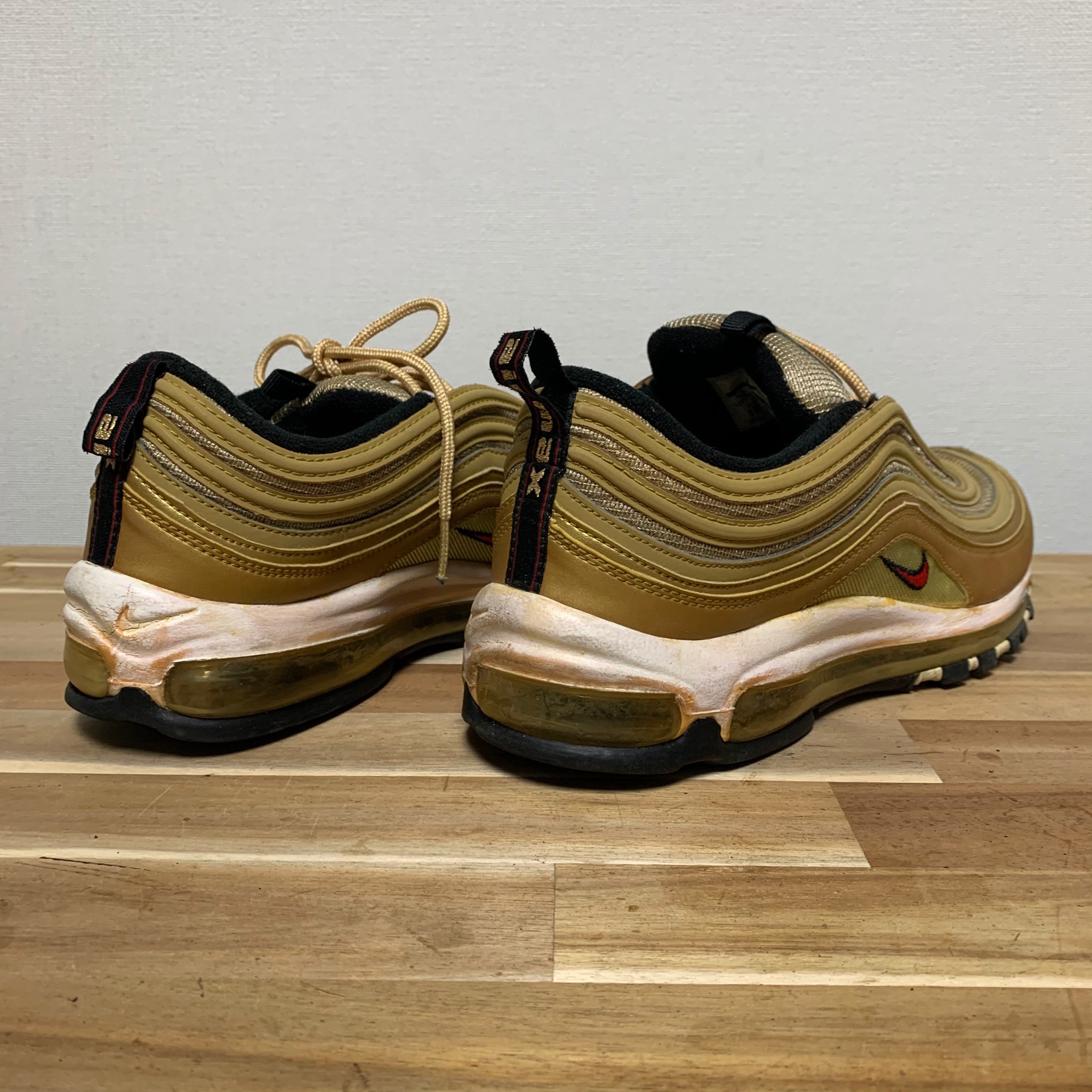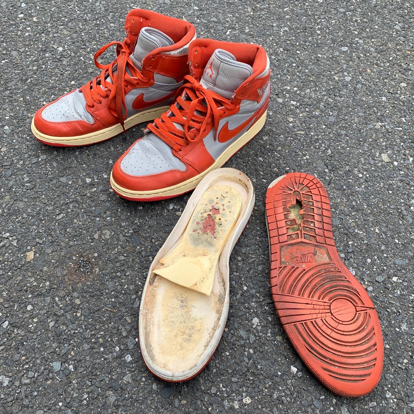 エアフォース1やエアジョーダン1のカップソールの中にはエアパックとウレタン素材が内蔵されていますが、これらは経年により劣化し、崩壊してしまいます。踏み心地がブカブカする、カップソールの縁から粉が出てくる、変な音がする、などの現象が起きているときはウレタン素材が劣化している可能性が高いです。劣化した状態で履き続けるとスニーカーのソールもアッパーも傷んでしまい、足にも歪みや不安定感が出て、負担が増してしまいます。
