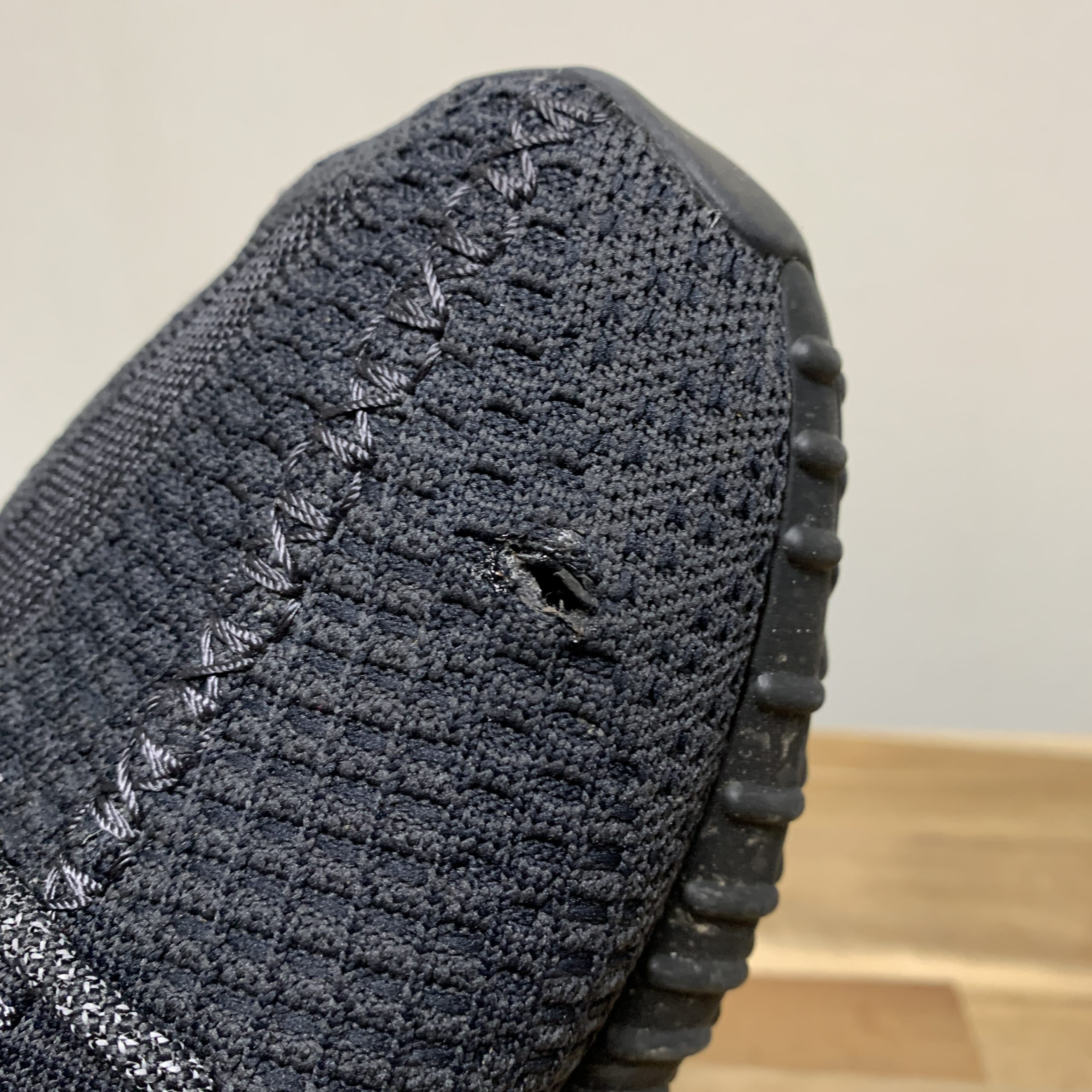 親指や小指などアッパーに穴が開いてしまった際には、細かくステッチをかけて穴を塞ぐ修理ができます。穴の度合いによっては裏側に革をあてて補強します。また、いつも決まった場所に穴が開いてしまう、破れが出てしまう、という方はスニーカーのサイズや履き方を見直すことで回避できることも多くあります。