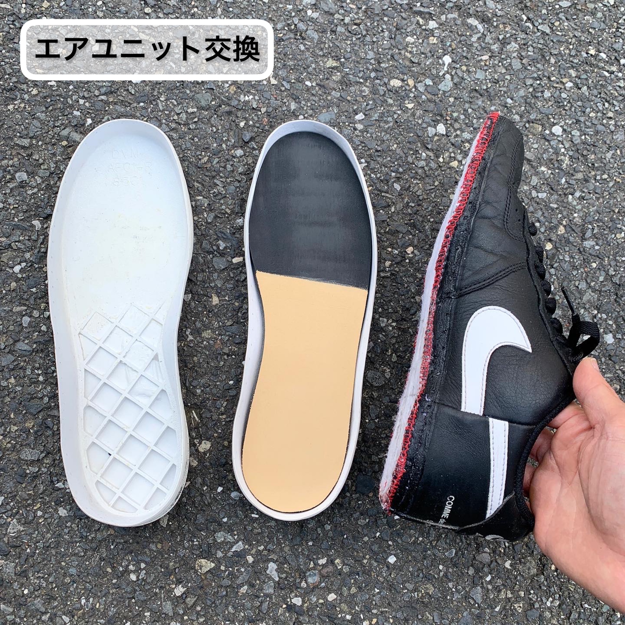 〇エアユニット交換(エアフォース1、エアジョーダン1など) 両足:9,900~12,100円