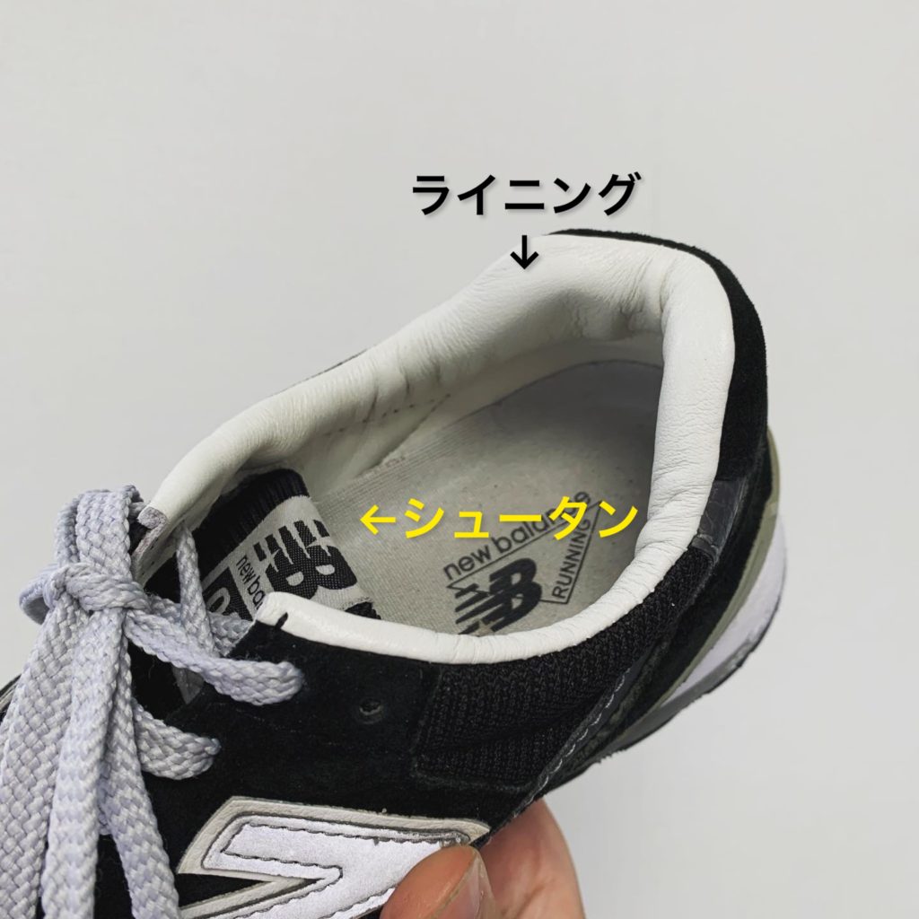 アッパーのカカトに内蔵されている硬い芯材です。基本的に内部にあるため見ることができませんが、最近のスニーカーでは表に出していたり、入っていなかったりするモデルも多いです。