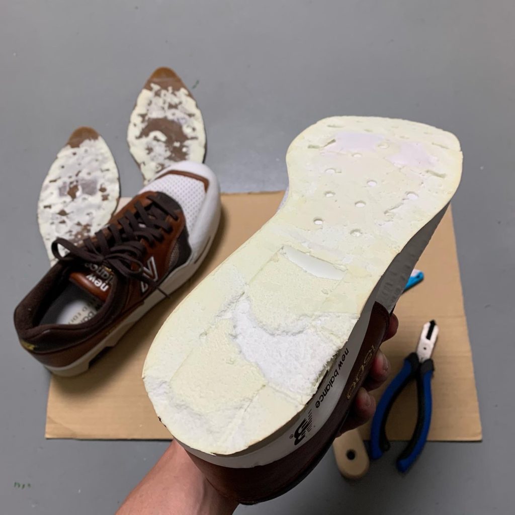 ミッドソールはすべてウレタンのため、加水分解が起きてしまいます。アウトソールはラバーのため、硬化が起きていなければ使い回すことができます。