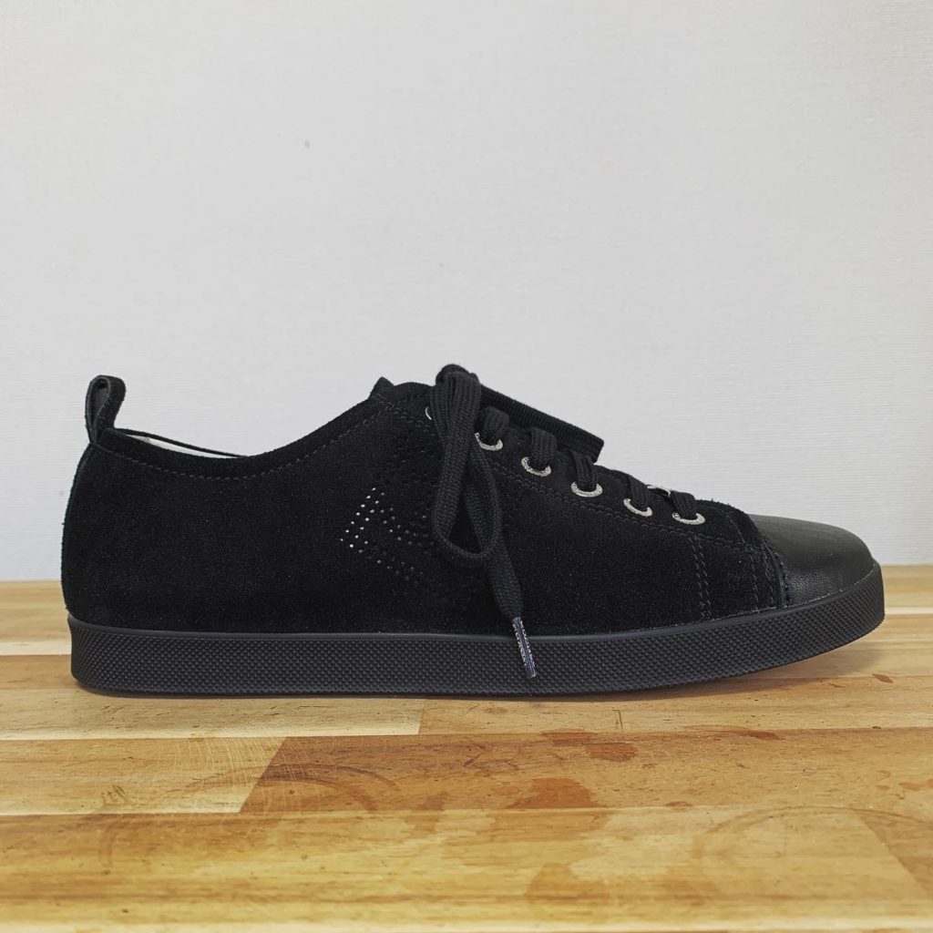 こちらもお客様のお気に入りのスニーカーだったようですが、つま先のカバー部分とソールのラバーに劣化による細かな亀裂が出始めており、それらの修理をご依頼いただきました。