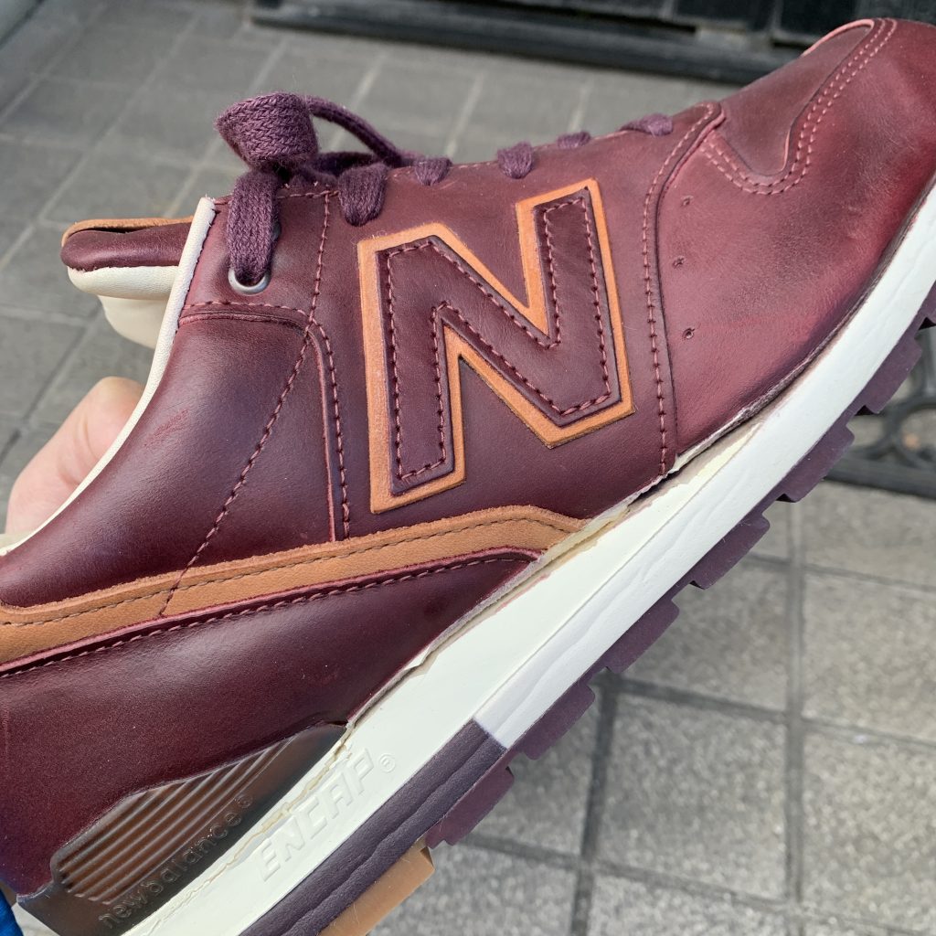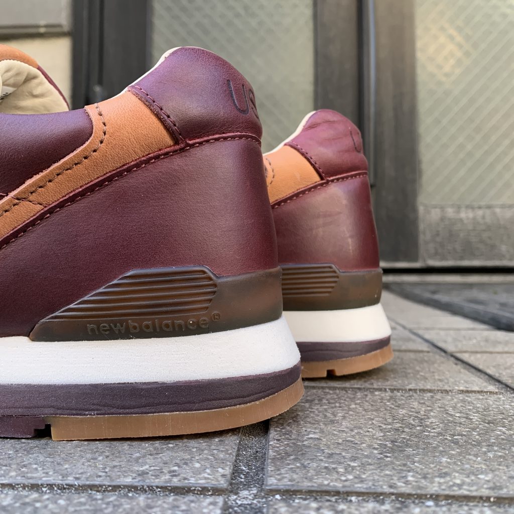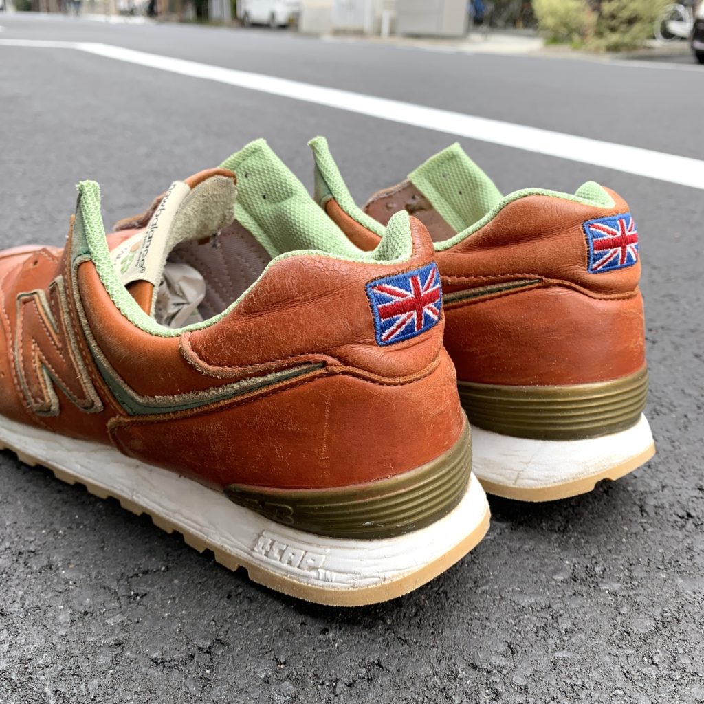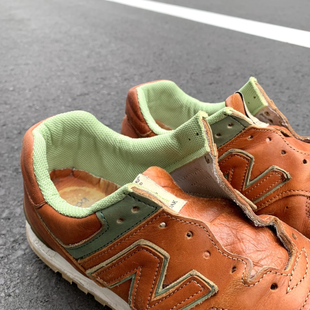made in USAのガラスレザーアッパー576は、ミッドソールが加水分解しないEVAスポンジ素材の【C-CAP】ですが、再接着ではなくソール交換することも選択肢の一つです。オリジナルのバランス、デザインに近くなるようにミッドソールを形成しています。カカト側のグレーの部分はペイントではなく、グレーのEVAスポンジを加工しています。