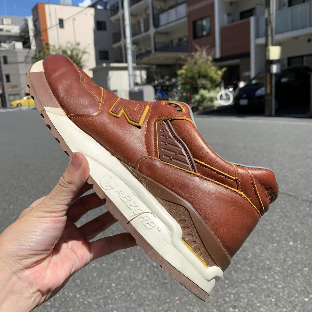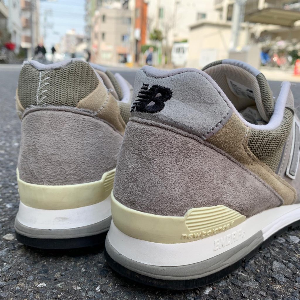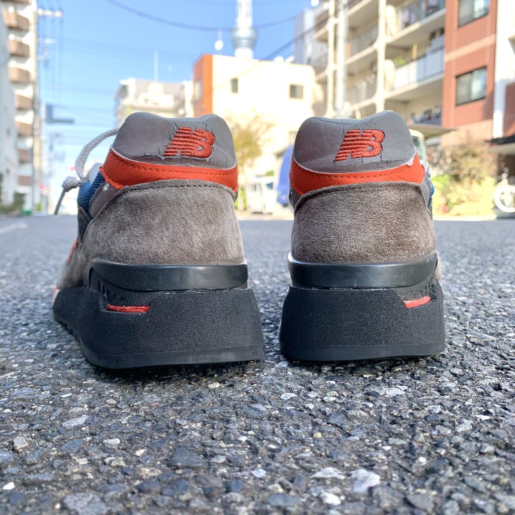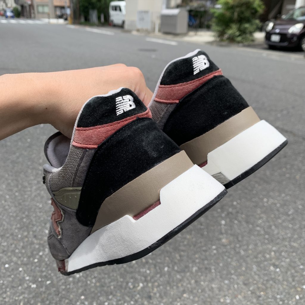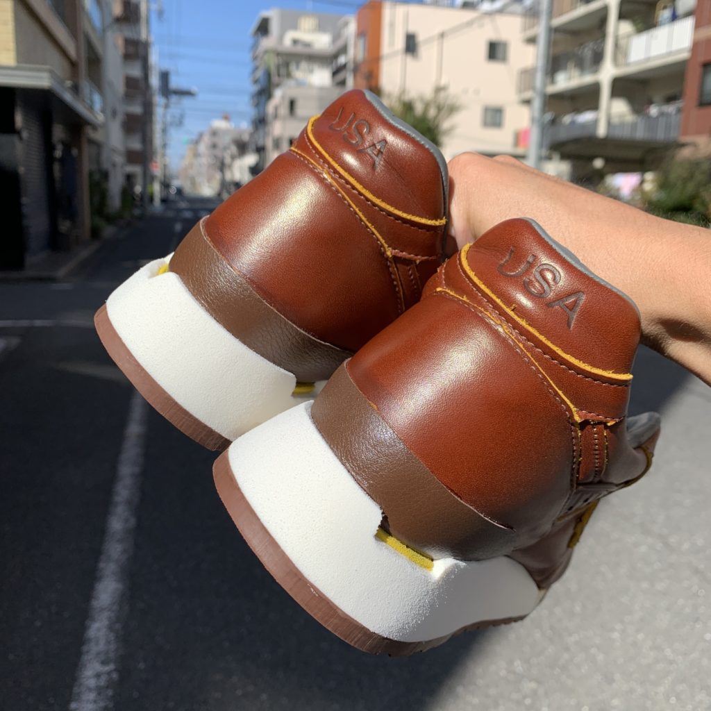 made in USAのガラスレザーアッパー576は、ミッドソールが加水分解しないEVAスポンジ素材の【C-CAP】ですが、再接着ではなくソール交換することも選択肢の一つです。オリジナルのバランス、デザインに近くなるようにミッドソールを形成しています。カカト側のグレーの部分はペイントではなく、グレーのEVAスポンジを加工しています。