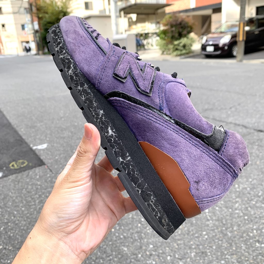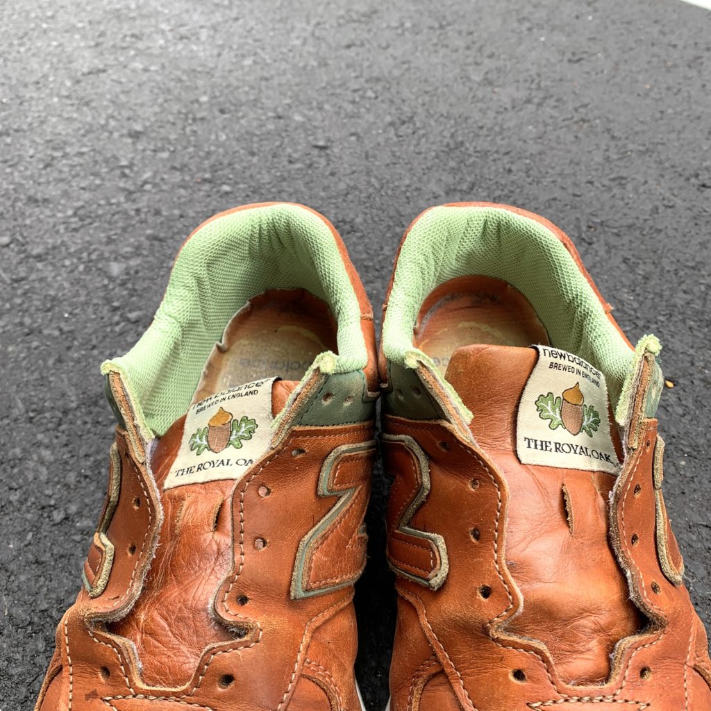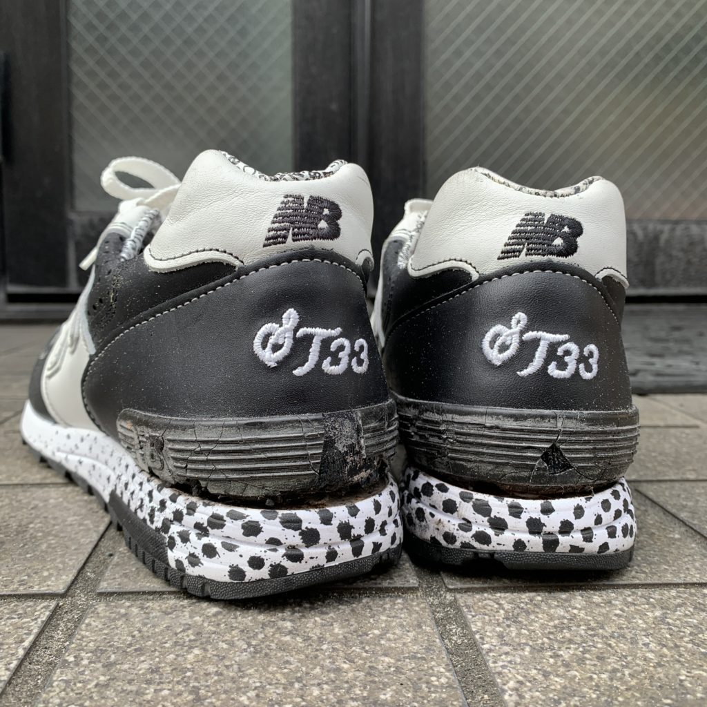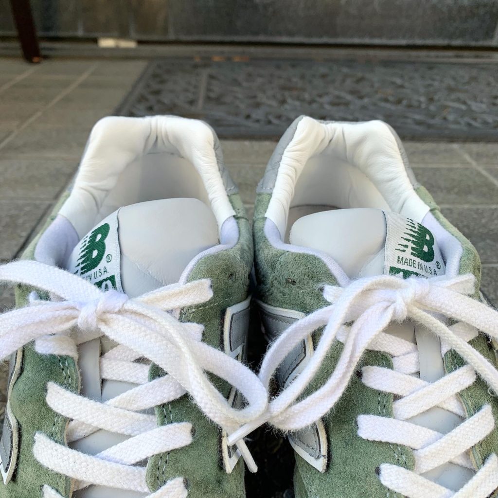made in USAのガラスレザーアッパー576は、ミッドソールが加水分解しないEVAスポンジ素材の【C-CAP】ですが、再接着ではなくソール交換することも選択肢の一つです。オリジナルのバランス、デザインに近くなるようにミッドソールを形成しています。カカト側のグレーの部分はペイントではなく、グレーのEVAスポンジを加工しています。