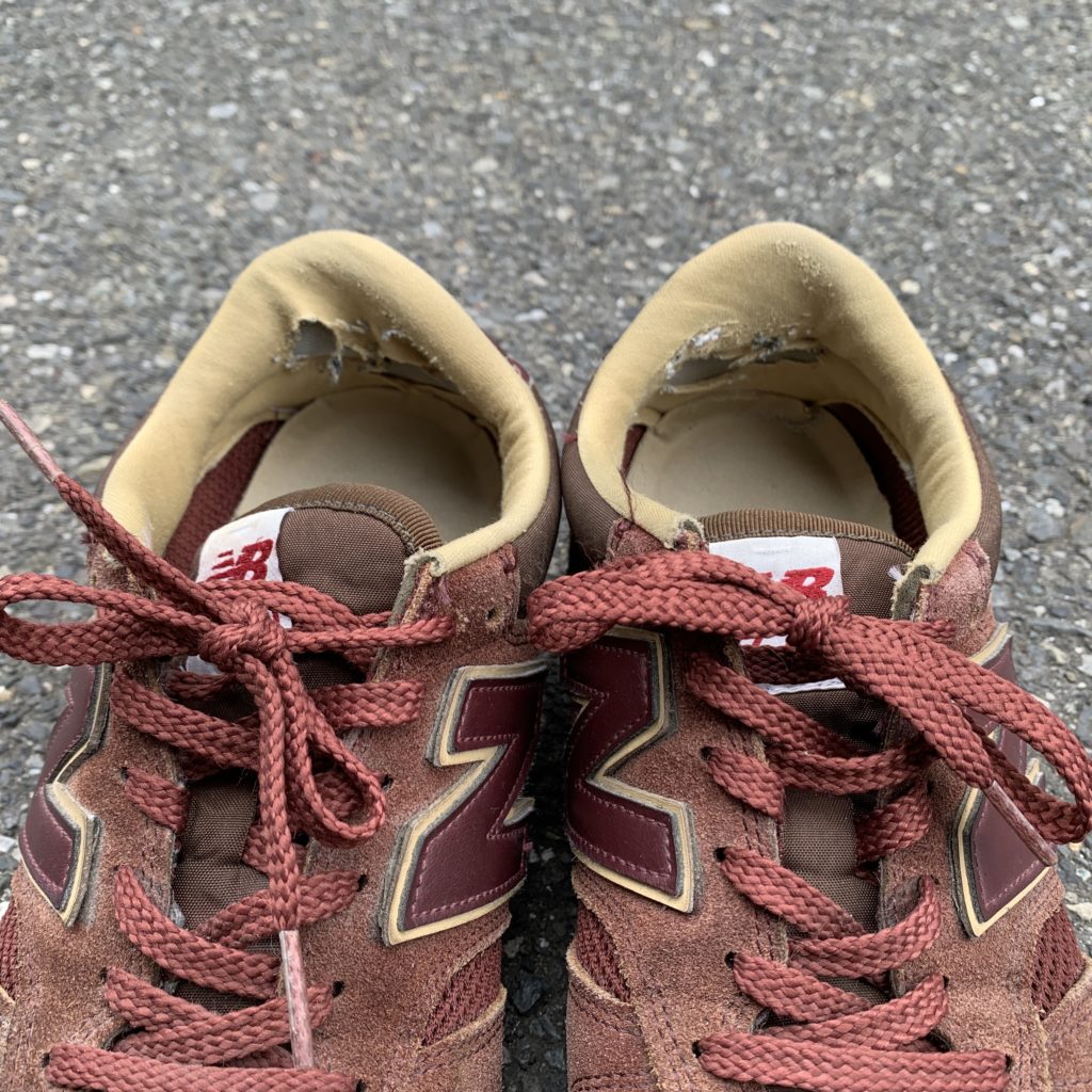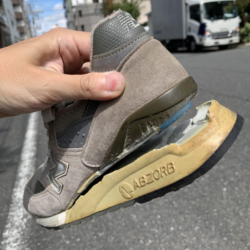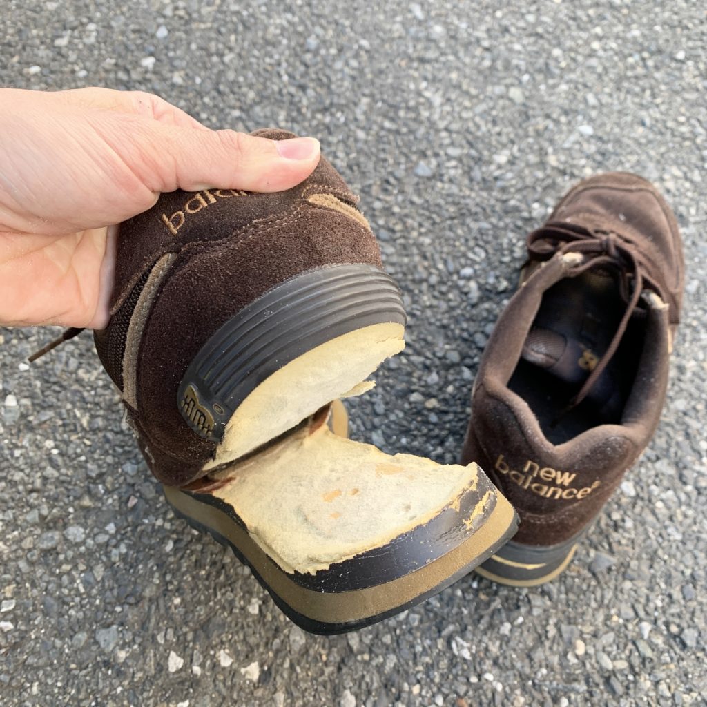 ニューバランスはモデルによってミッドソールにポリウレタンという素材が使用されています。このポリウレタンは軽量かつクッション性も備えた素材なのですが、経年で必ずボロボロになってしまうという欠点があります。ポリウレタンがボロボロになる現象を【加水分解】と言います。