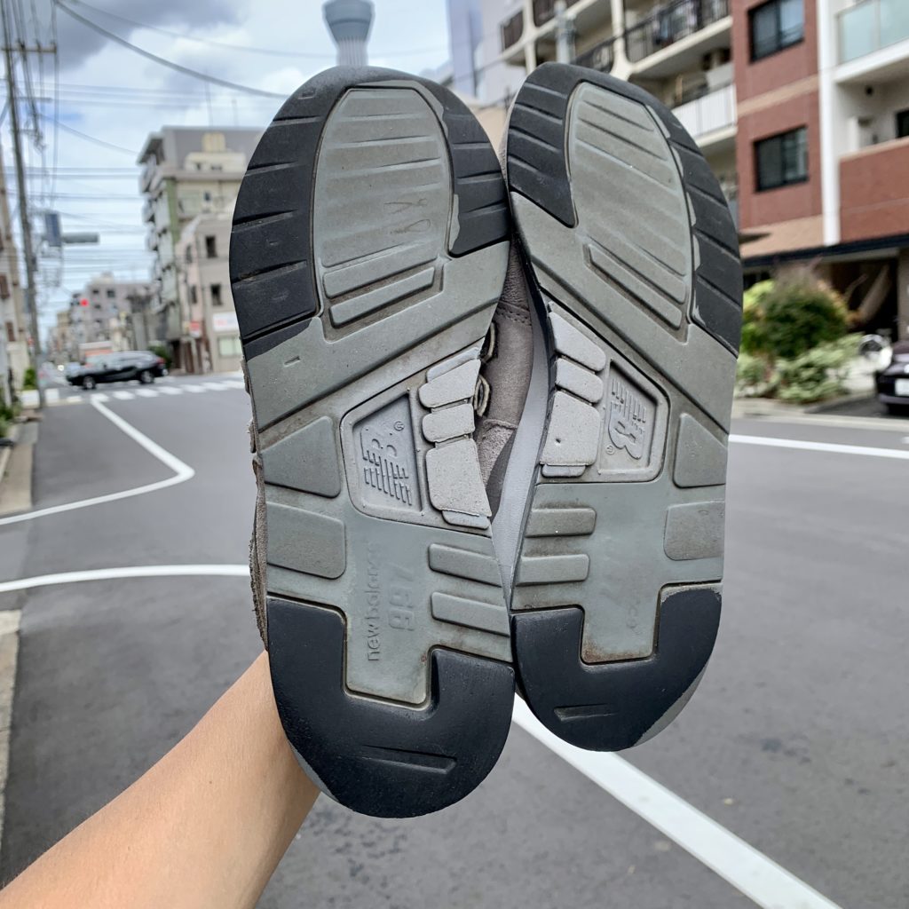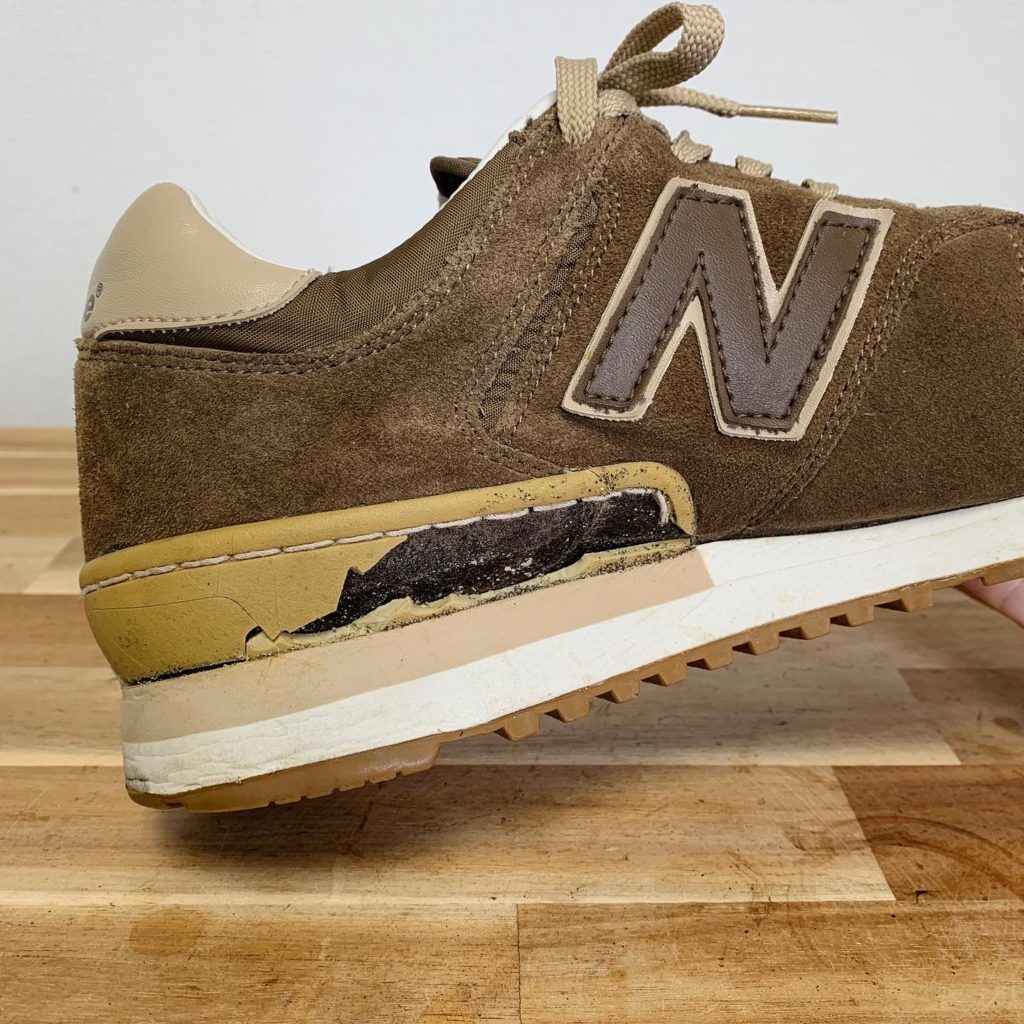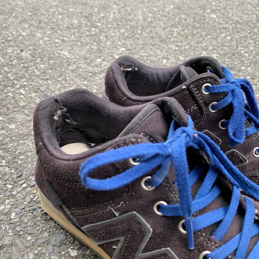 ニューバランスはモデルによってミッドソールにポリウレタンという素材が使用されています。このポリウレタンは軽量かつクッション性も備えた素材なのですが、経年で必ずボロボロになってしまうという欠点があります。ポリウレタンがボロボロになる現象を【加水分解】と言います。