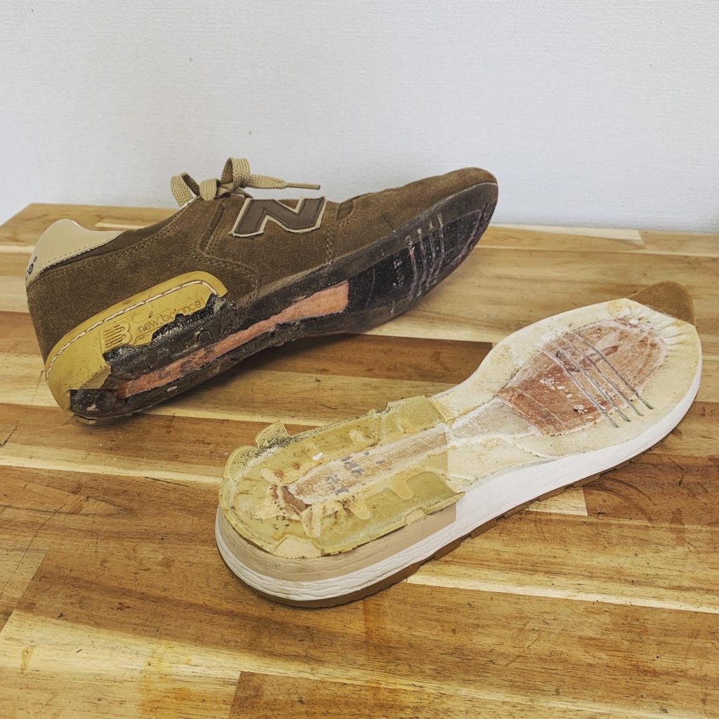 アウトソールを新しいラバーに張り替えをします。ニューバランスはビブラムの各ラバーソールとも相性が良いため、お好みに合わせたソールに張り替えることができます。