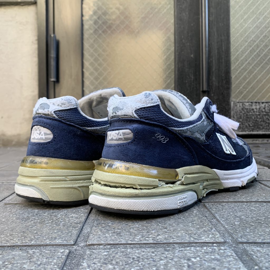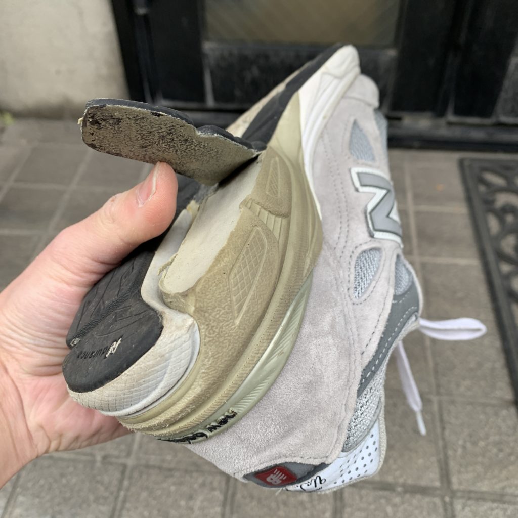 NB993は、NB992と同様にミッドソールのカカト側にポリウレタン素材が使用されています。加水分解したポリウレタンをEVAスポンジ素材へ交換しました。