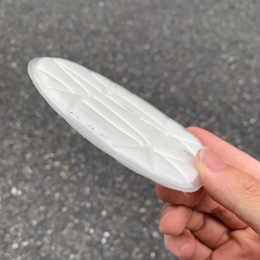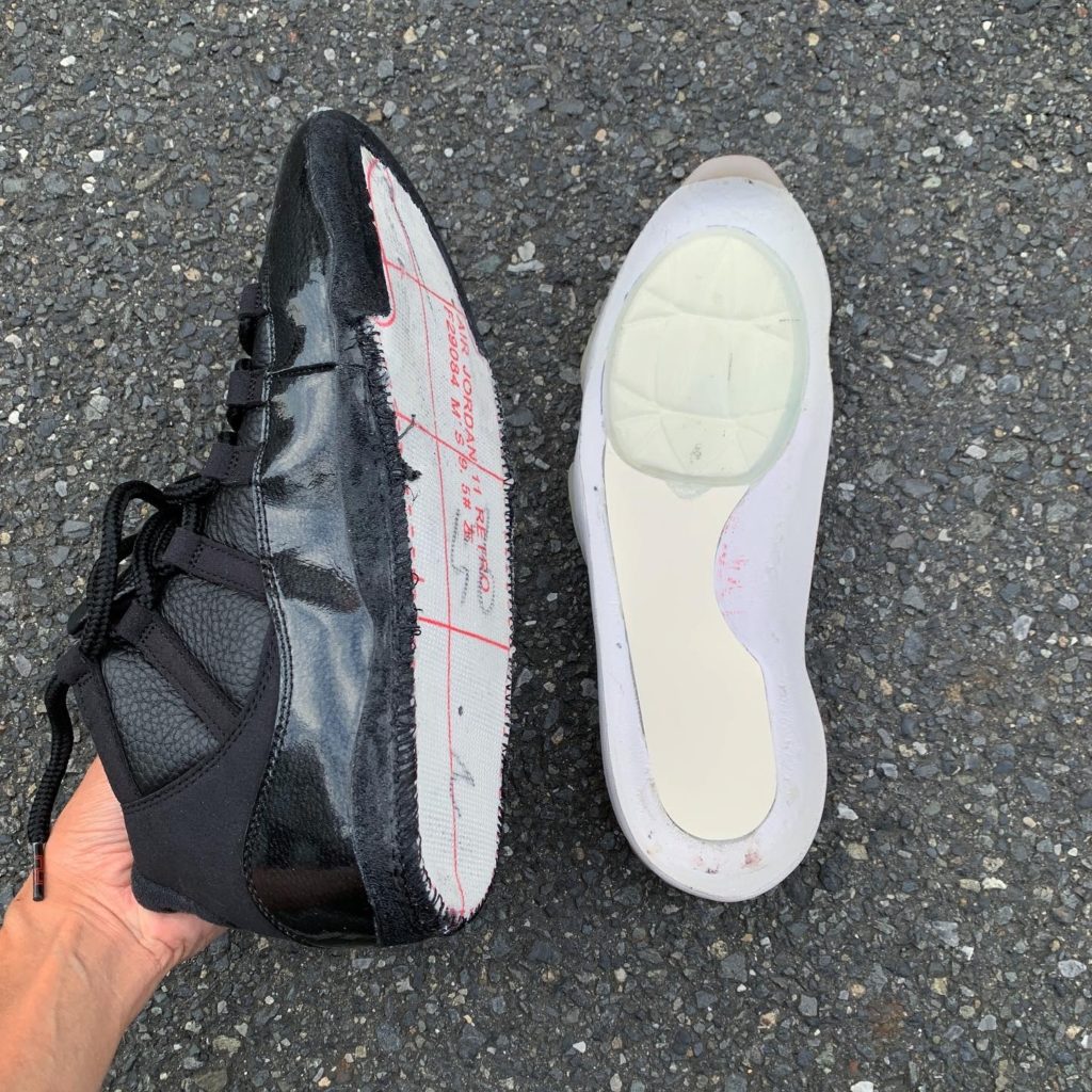 エアジョーダン11のミッドソールの前足部(指の付け根)にカイリー6から取り出したエアズームターボを移植しました。中足~後足部は、元のミッドソールよりも硬質なEVAスポンジで埋めています。