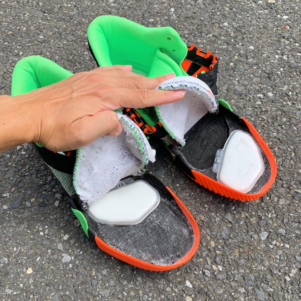 カワイ・レナードのシグネチャーモデルであるカワイⅡの前足部(指の付け根)にPG3から取り出した厚めのズームエアを移植しました。(PG3のバッシュには通常よりも厚めのズームエアが内蔵されています。)